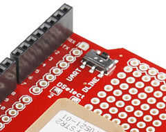 3. cuando es el momento de cargar y ejecutar sketch en el escudo GPS, mueva el interruptor a la posición de DLINE. Código para la prueba se coloca por debajo,