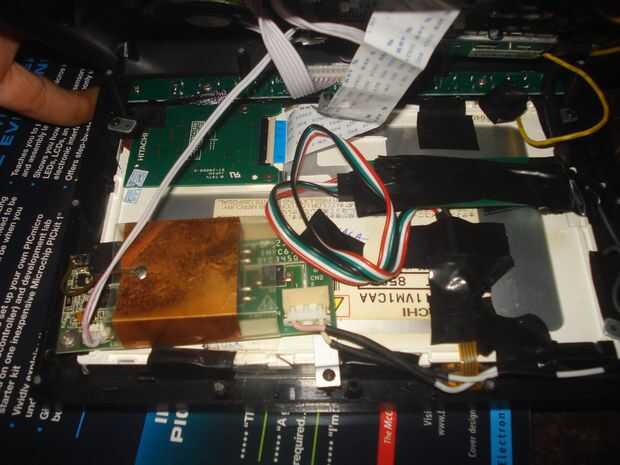 Desmontar el monitor LCD de 7 pulgadas y coloque el panel táctil en la pantalla y el controlador de monitor enclosure.attach el panel utilizando cinta invisible.