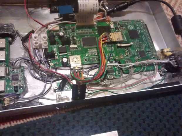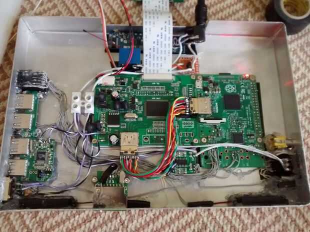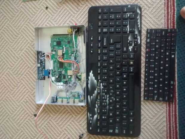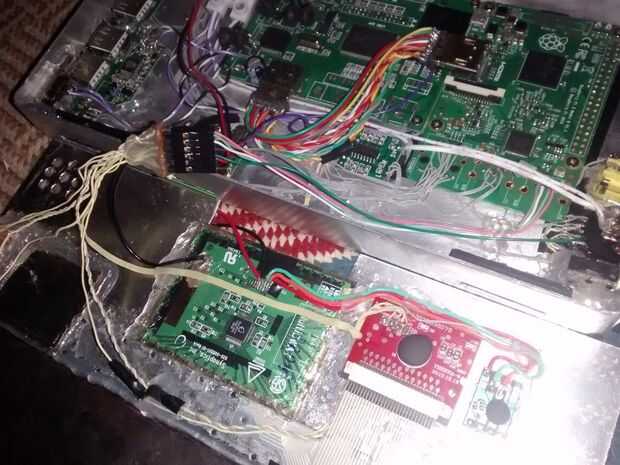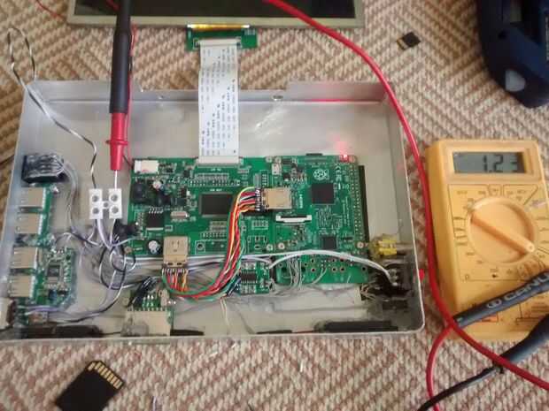 Ahora que tenemos una caja completa, vamos a empezar a colocar todo dentro! Algunas cosas que antes no noto son el hub usb, el módulo de wifi y los altavoces. Estos dependerá cómo configurar tuya. Mi diseño básico era tener una potencia de 5v principal que conecta cada compenect hambre de poder a y las líneas de datos que tienen conectadas directamente a la pi. El hub usb por ejemplo tenía su 5V y GND pines conectados directamente a la salida de 5V principal mientras que sólo las líneas de datos tienen conectadas a la pi. Es el mismo caso con cada componente de otro. El teclado se conecta directamente a la IP a través de usb. El touchpad es un PS/2 touchpad que se convierten a USB por un pequeño adaptador y luego su también conectado a la pi. Cómo hacer los botones de los botones para el touchpad o el poder su hasta usted! Ser creativo! : D