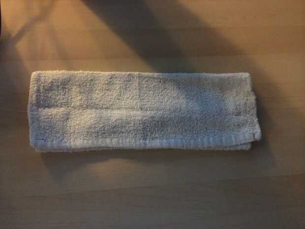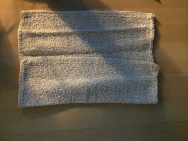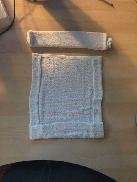Después de haber encontrado el lugar ideal para los cuadernos, llevar sus toallas y poner laminados uno planos sobre la mesa con el borde inferior (hacia usted) más dos o tres veces para ayudar a sostener la base de la máquina de la parte inferior. Pliegue en los laterales una vez el ancho para lo mismo que las carpetas. La mayor parte del peso de la configuración está ahí, así que usted puede tener algunos "superposición". Esto es normal y puede tardar unas horas para acostumbrarse.