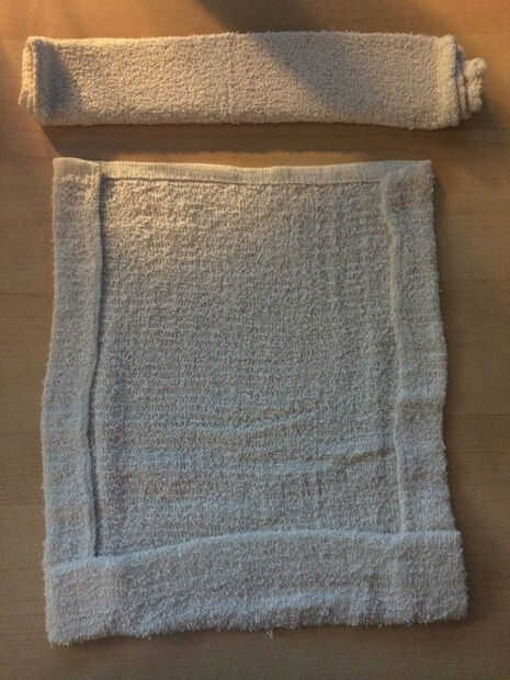 La segunda toalla del doblez en un rollo plano, cerca de dos pulgadas de ancho. Coloque este unas pocas pulgadas de la parte superior de la toalla primera. Usted tendrá que ajustar en un momento.