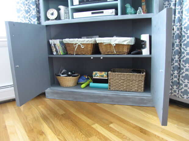 Hice esta consola de TV para un amigo que vive en un condominio y tuvo problemas para encontrar una unidad para caber en un espacio pequeño. Las dimensiones son de 40" de ancho x 24" de alto y 12" de profundidad. Mira mi video para obtener