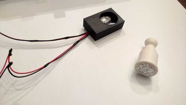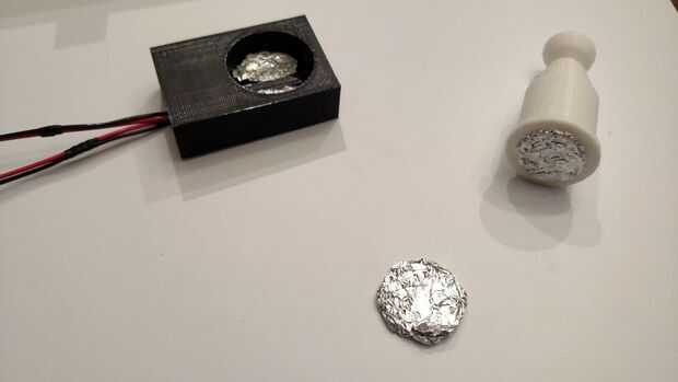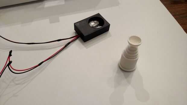 El último paso en la construcción es crear un conductor terminal en la parte inferior de la 3D impreso trofeo.