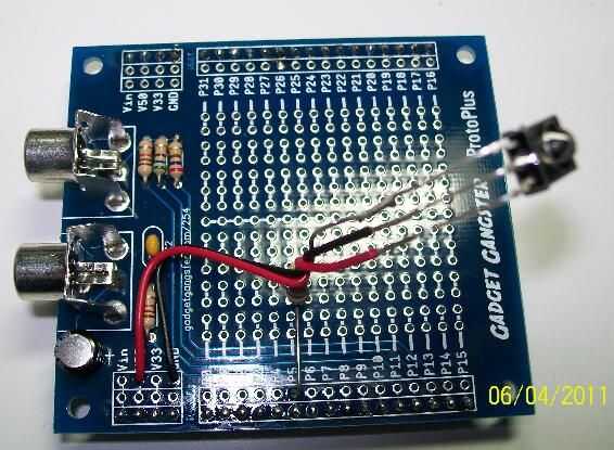 Ahora que tienes los cables y resistor conectado al módulo IR, soldarlos en el tablero de ProtoPlus como se muestra.