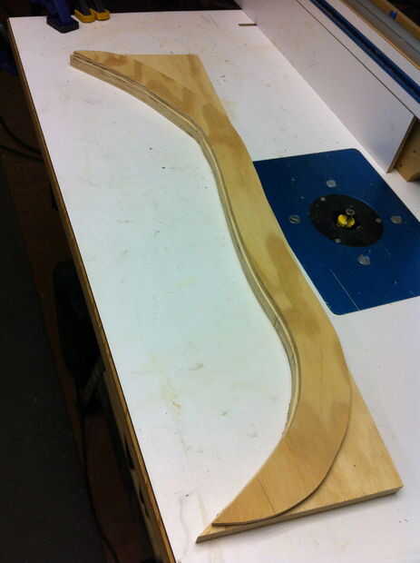 En la primera foto, puede ver la forma de la plantilla después del corte y lijado.  Tómese su tiempo haciendo la plantilla ya que se utilizarán para hacer las piezas sobre la mesa de la fresadora con una broca de recorte al ras.