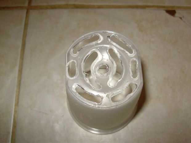 Para empezar encendió mi soplete y calienta un clavo. Pues yo utilizaba el clavo caliente para derretir una rejilla en la parte inferior de mi coctelera de la ensalada. A continuación utilicé un un cuchillo exacto para cortar un agujero en la tapa del casquillo que i podría caber la fricción en la entrada de las bombas. Sólo corté encima de la tapa en una de las tapas, se queda en la entrada de bombas y cualquier filtro pre estoy usando obtiene deslizado en él.