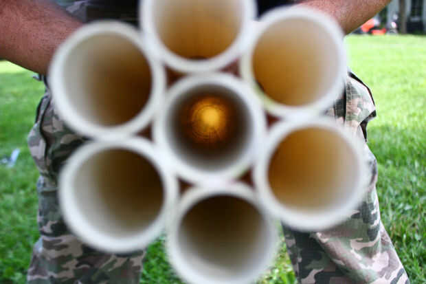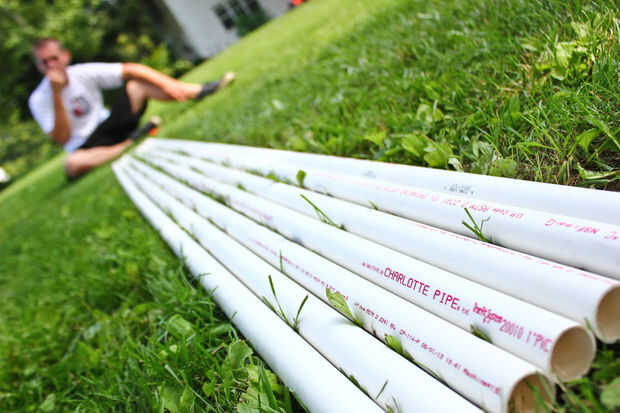 Usando una tabla vio, corté el (8) tubos de pvc de 10 pies a 5 pies, secciones de 3 pies y 2 pies.