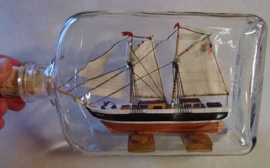 Es necesario comenzar con una botella. La forma de la botella determinará qué tipo de nave se debe construir. Un frasco estrecho alto como esta es ideal para un gran velero. Un gran cuadrado amañada clipper no encajaría. Pero un schooner del topsail llena el espacio vacío dentro de la botella muy bien.
