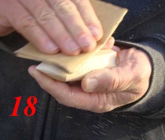 #18 y #19. Usando papel de lija suave todo. Tenga en cuenta que tenía el papel de lija plana de las curvas suaves de la proa, y doblé el papel de lija sobre para crear una forma que la zona de la popa que necesita arenada.