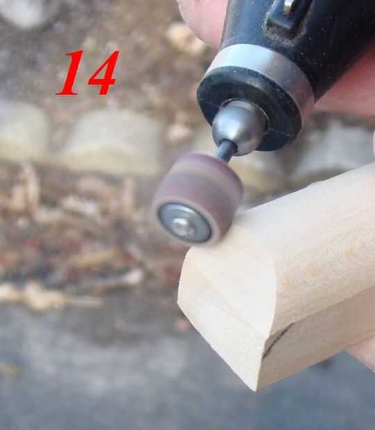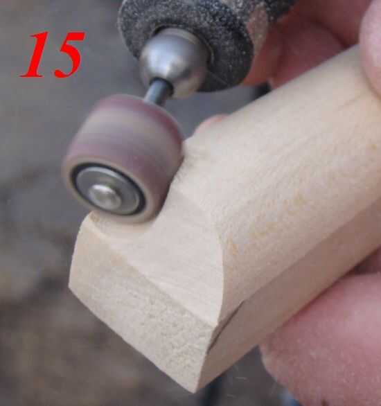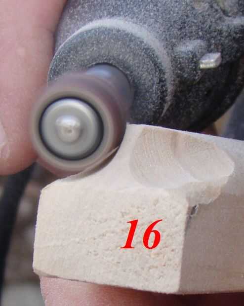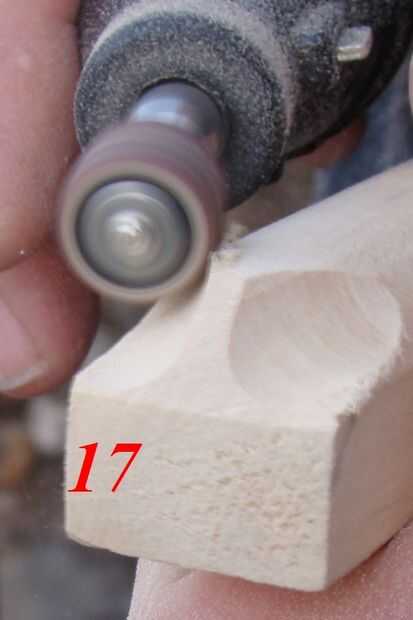 #14, #15, #16 y #17. Usando el tambor de lijar una herramienta Dremel. Forma la zona donde se estrecha la parte trasera del casco hacia abajo a la zona del timón.