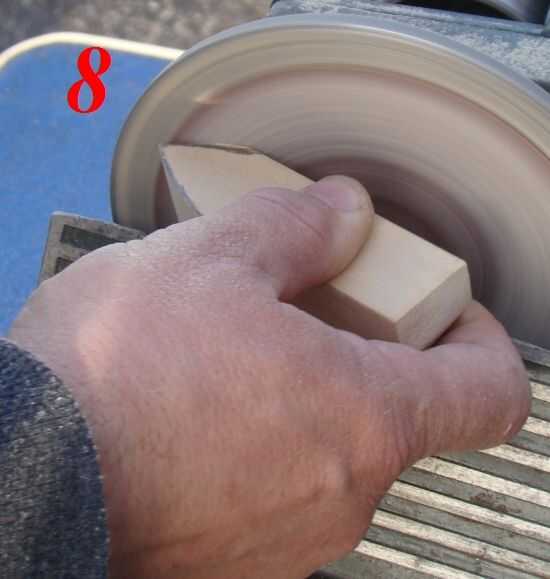 #6, #7, #8 y #9. Forma el contorno superior del frente del casco. Sólo están haciendo formas planas, manteniendo el nivel de bloque con el disco de lija.