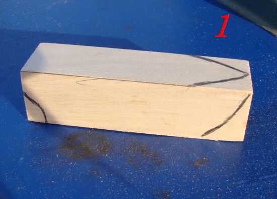 #1. Dibujar el perfil de lado básico y el contorno superior del casco en el bloque de madera.