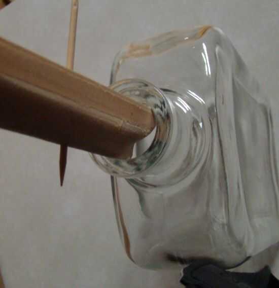 Se puede ver que el casco ya es más grande que la abertura de la botella.