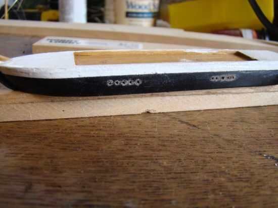 Hay cinco agujeros detrás de la ubicación de cada mástil. Las líneas de cubierta irá en estos orificios.