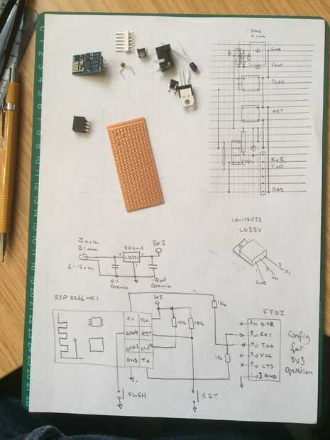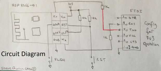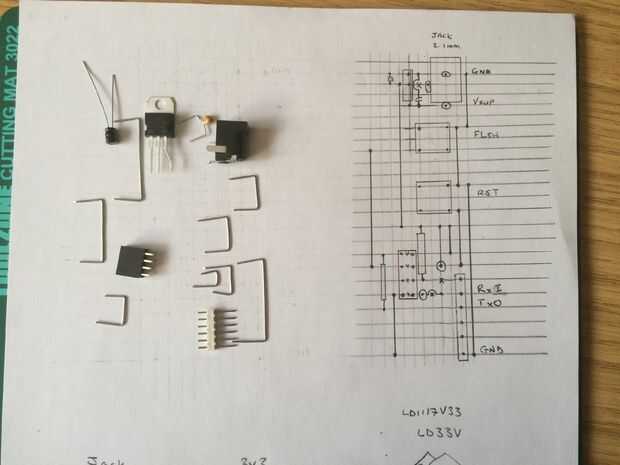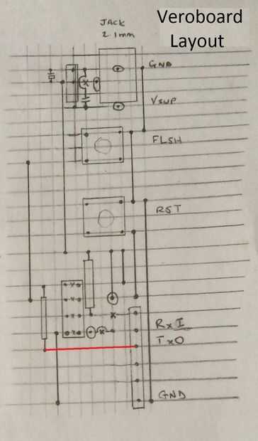 ¿Qué significa nodo por nodo? Cada punto en el circuito que se conecta a otro de los puntos es un nodo. He incluido dos fotos que representan un punto de nodo típico entre el FTDI TxO y el pin Rx de ESP8266-01, de esquema y Layout de la Veroboard.