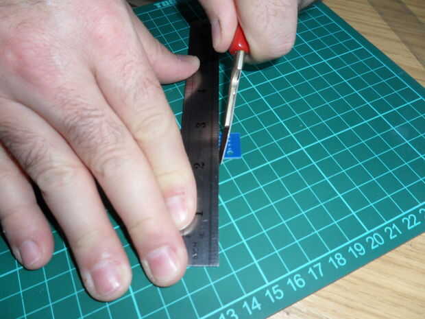 - Usando un cuchillo afilado (con seguridad), repetidamente puntaje junta superior e inferior por el borde recto (5 o 6 veces), correr por las perforaciones.