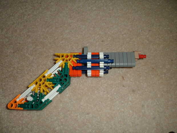 nota en la parte inferior de la manija en la fotografía muestra una barra blanca. en que la barra blanca es un conector con dos gris. Añadir esto a tu arma.