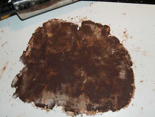 2. Superficie de trabajo de polvo con partes iguales de cacao en polvo y harina garantiza de una galleta bien oscurecida.
