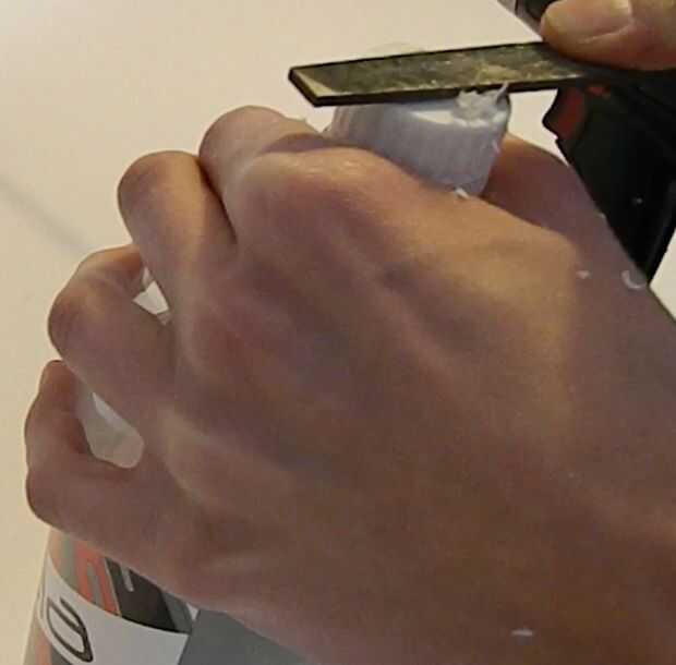 • Retire el codo y presentar las barbas sueltas y plástico sobrante de alrededor del agujero en la tapa.