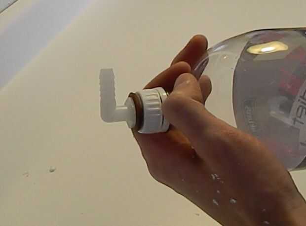 • Atornille el codo en el agujero en la tapa, como se muestra en las fotos. Asegúrese de que se enrosca hacia abajo firmemente para asegurar un sello hermético.