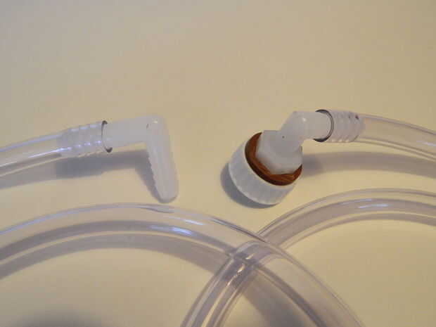 • Acople un extremo del "Codo manguera" al otro extremo del tubo.