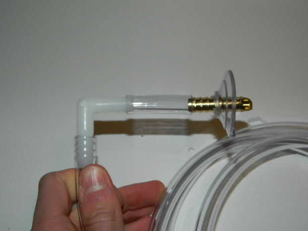 Para conectar la manguera de latón pieza púa al codo de vinilo...