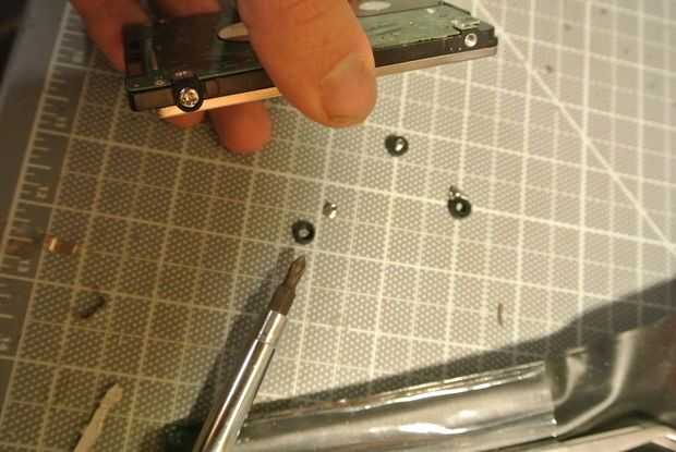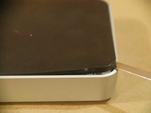 En primer lugar, utilizar el spudger (o tarjeta de crédito o destornillador de cabeza plana) para ir alrededor de los bordes y pop arriba el disco duro.