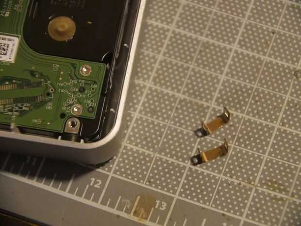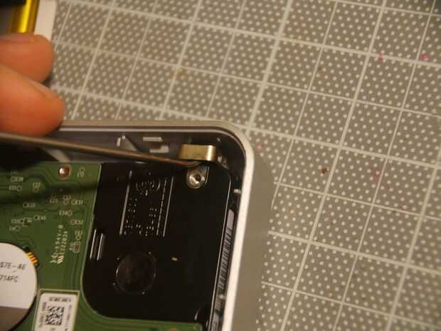 Ahora es la única parte delicada. El HD se lleva a cabo en lugar con las perillas de goma de agarre que sorta-primavera-ejercido presión sobre en su lugar. Si usted toma su Spudger y deslice hacia el centro, el poder del HD solo pop hacia fuera.