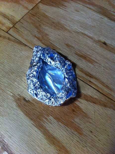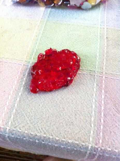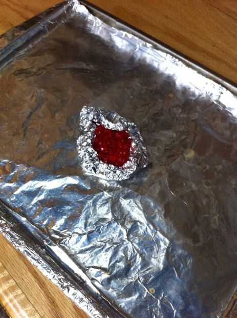 Con esto, dibujaba la joya en papel de aluminio y luego doblado para caber la forma... es mejor no romper para que sea más fácil sacar a pesar de arrancó la parte inferior (oops). Entonces encontré unos granos rojos y relleno en el molde hace y ponerlos en el horno a 400 grados F por unos 28 minutos o cuando los granos están todos fundidos juntos. Si tienes un ventilador de ventilación en su cocina, usted debe encender después de unos minutos de cocción ya que plástico fusión tiene un olor que no es la más atractiva.