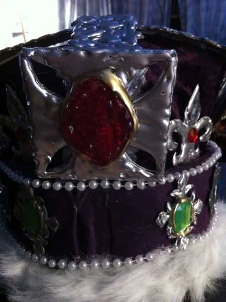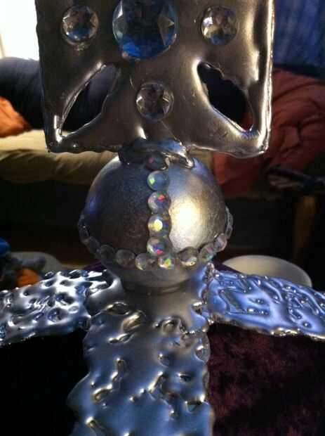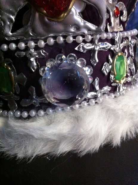 Foto 5 y 6 son del diamante de Cullinan (no real, por supuesto!). Encontré esto en mi sótano en algún lugar, pero estoy seguro de que usted podría encontrar algo como esto en una tienda de arte en la sección de joyería o en la sección de la boda. Había pegado en la parte delantera de la corona y la sostuvo allí un rato puesto que tenía un extremo puntiagudo, como una forma de diamante típicas. Luego, para hacerlo menos feo, sólo pegué izquierda sobre gemas alrededor de él!