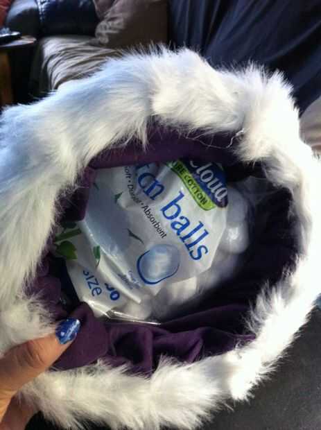 Para hacer tu vida más fácil, es mejor guardar el bolso de animal cottonballs/peluche en el sombrero para que la tela pueda levantarse así que usted puede probar que cada ahora y entonces. Hacer no, sin embargo, pegue esta bolsa de animales a la tela! No será una parte del traje y se eliminará más tarde!