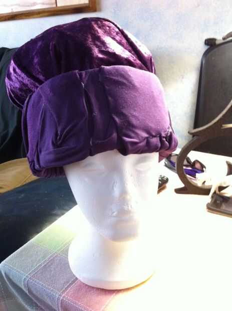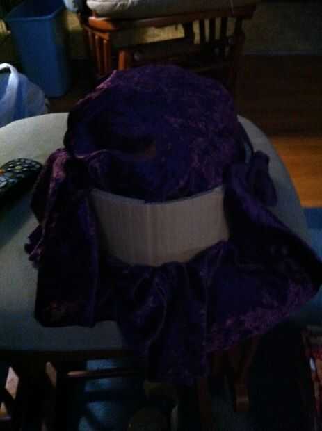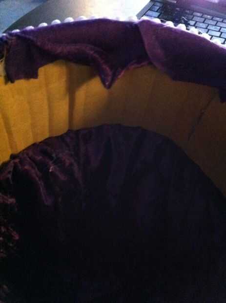 Luego tomar a la tela circular y fijar la cartulina con el centro del círculo en el centro de la cartulina. Entonces, se necesita ayuda para hacer la forma. Porque probablemente no quiere poner pegamento caliente en la cabeza o la cabeza de un amigo, puede utilizar una bolsa de plástico con relleno dentro de una bolsa de bolas de algodón (lo utilicé) o incluso un animal de peluche grande, de la felpa.