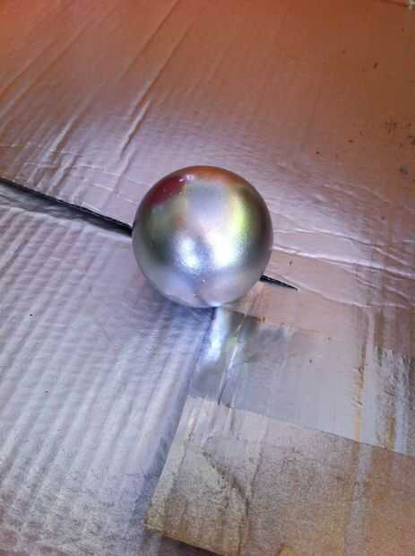 Para la bola, usaba una pelota de goma liso pero una pelota de golf o de ping pong debe probablemente trabajar, sólo mire a su alrededor y encontrar algo del tamaño que te gusta y utilizarlo! Sin embargo, asegúrese de tener cuidado y rocíe la bola en algún lugar donde no rodando mientras está secando. Solía un alambre grueso como base para fijar en pulverización y secado, para que ayudó a obtener la pintura por todas partes de la pelota. TAMBIÉN si usas una pelota de plástico, la pintura tendrá alrededor de 20 horas para secar y aún entonces, si la pintura se acumula en un lugar, todavía sea mojado, así que ten cuidado y ten paciencia! Por esta razón quieres pintura de aerosol en alrededor del mismo tiempo y desde el principio en el proceso, para dar todo el tiempo para secar.
