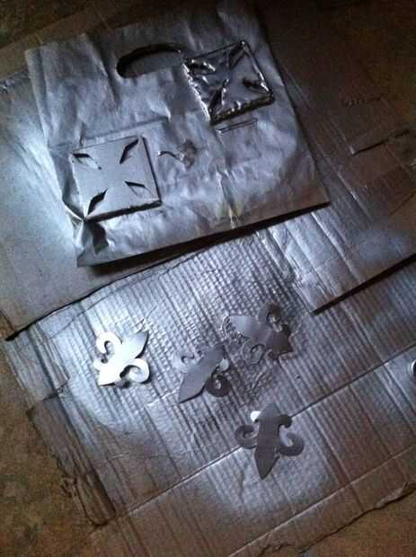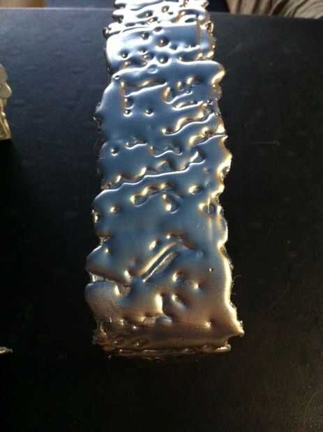 Utilizar la pintura en aerosol plata para rociar la cartulina, pegar las tiras de cubierta y los diseños en papel (no recorto aún!). También utilizar la pintura para pintar una pelota para la parte superior (que llevó para siempre porque la pintura seguía a dejar la cara desigual, así que cuando se pulveriza, asegúrese de rociar uniformemente como sea posible), así como los diseños de cartón grandes.
