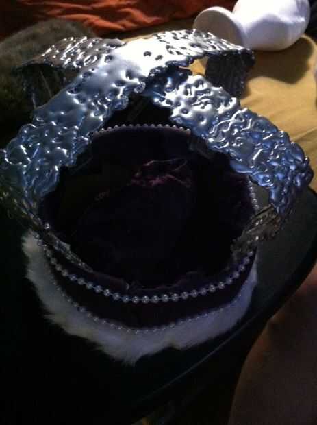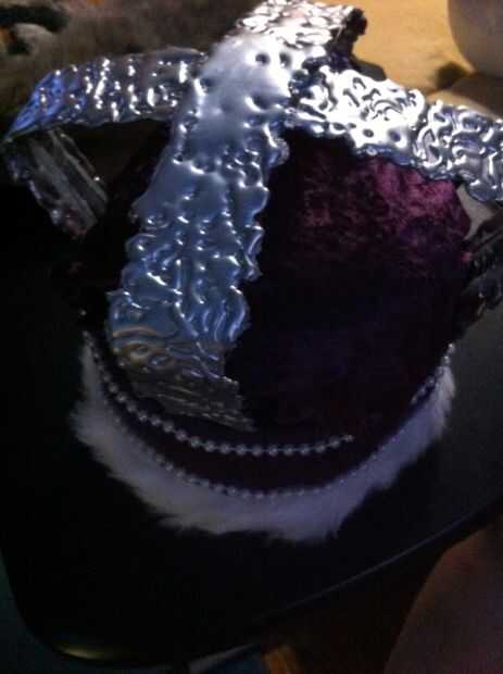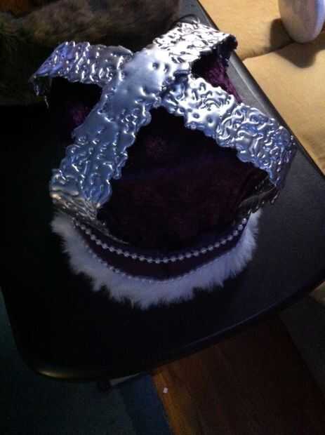 Para éste, las tiras de cartón pintado a pistola y pegado a los cables que se fijan ahora en su lugar! Pegarlos a los lados de la corona y luego pegar a la tela hasta las tiras. Asegúrese de que es del tamaño correcto antes de que pegue!