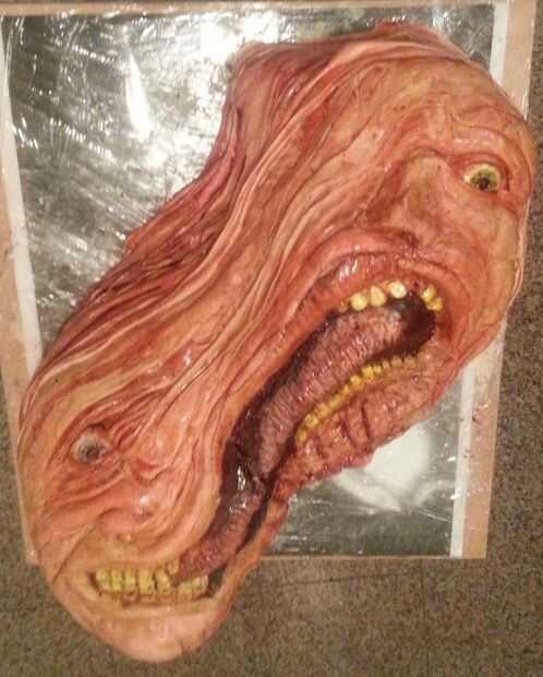 para el cumpleaños de mi otra pareja, le pregunté qué tipo de pastel que quería... super sabroso? ¿hermosa? ¿raro y maravilloso? Para mi alegría, él escogió el último. Con su amor de ciencia ficción de los años 80 y el horror, consiguió una imagen de la versión de 1984 de John Carpenter "La cosa" y me fui a la ciudad. Aunque nunca había hecho algo así antes, estaba armado con mis herramientas de escultura, algunos YouTubes y una apreciación de lo grotesco, así que me sentí bastante bueno acerca de las perspectivas.
