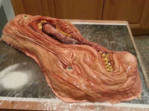 este es nuestro topper Alien y la torta de boda PredAlien que fue proscrito en nuestra boda!  Compré dos juguetes raros y adorable cosbaby y construido este pastel de cumpleaños, todo para saber mi mamá no me deja usarlo en nuestra boda.  Pero me pas