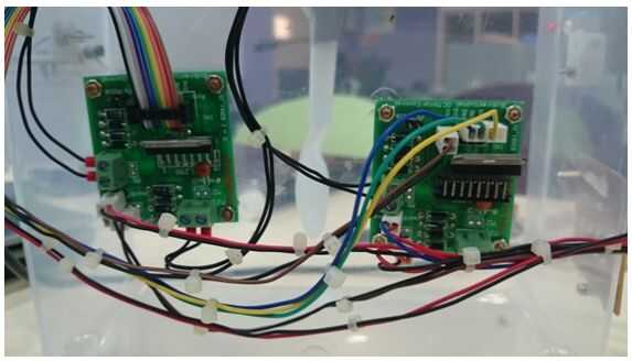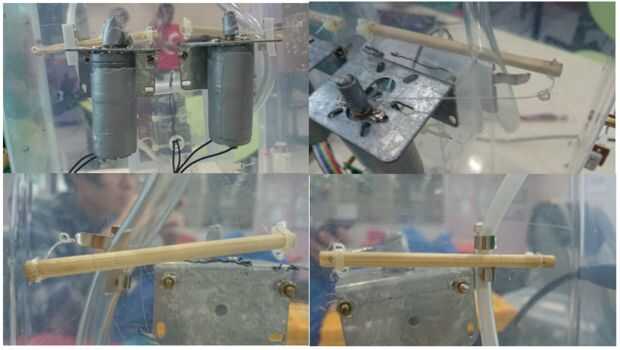 Un envase de plástico duro transparente o una caja de madera será conveniente como el recinto del proyecto. Perfore agujeros en la parte posterior de la caja para montar los motores, como se muestra. A continuación, en el interior del recinto, taladre los agujeros para las bridas garantizar el bastón, chop desechables que está medio partido. Utilice una cadena de pesca para atar un extremo de la vara de picar al motor y un conducto de cinta a cinta la cadena de pesca en el eje del motor.