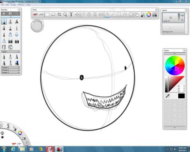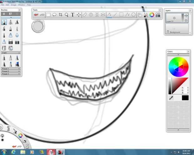 Usar la herramienta de zoom para hacer todos los dientes dentro de la boca. Hacer una pequeña sección en un momento. Es difícil mantener la coherencia para un largo tramo.