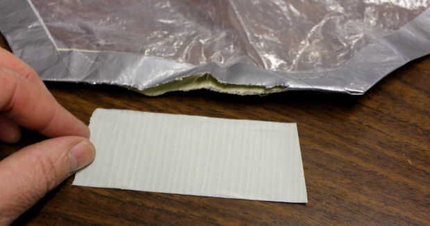 Corte un pedazo de cinta un poco más pequeño que el tamaño del agujero. ( Pic 2 ) Deslice la cinta recta para que la cinta está en el interior y doble ( foto 3 )