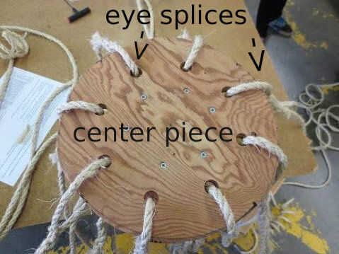 1. ojos-empalme 17' cuerda a cada agujero en una cara de la pieza central.