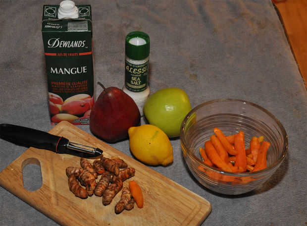 1 litro de jugo de Mango - endulzado preferentemente sin azúcar, sólo con zumo de fruta.