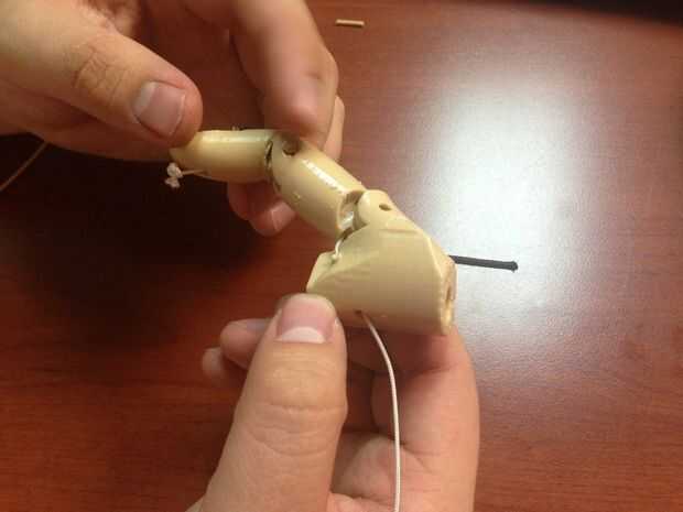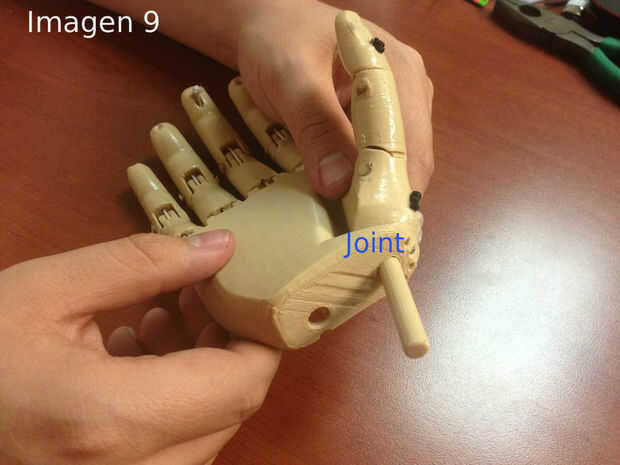 - Unir las piezas thumb_Prox.STL y Thumb_top. STL Calima filamento para formar el eje de rotación.