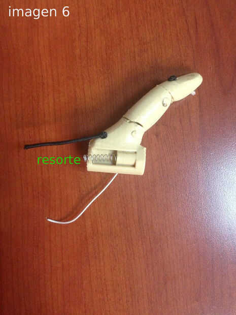 - Insertar el resorte en el conducto de la la pieza ThumbPalmUnion.STL. Imagen 6