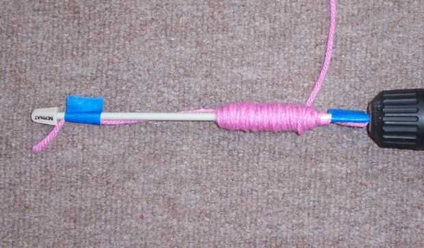 quería hacer mi propia versión de la devanadera del hilado taladro accionado. Se trata básicamente de una devanadera de la bobina grande.Se necesita:dos tapas de plásticouna pajacinta para ductostaladroPaso 1: montaje Taladrar un agujero en el centro