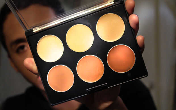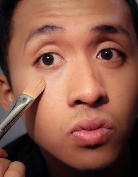 • Solo aplico un poco debajo y alrededor de mis ojos, abajo el puente de mi nariz, en la frente, barbilla y mandíbula. El color más claro ayudará a mejorar esas características para darle un aspecto más masculino.