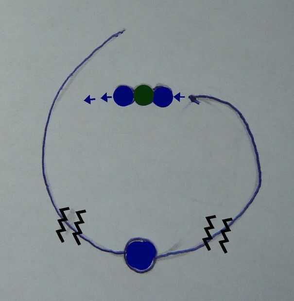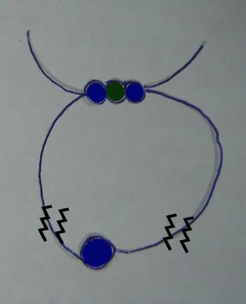 • La segunda fila consiste en 3 granos, los dos exteriores es la misma que en el paso anterior, el grano medio es uno de los colores que eligió para los pares de bases (utilicé verde).