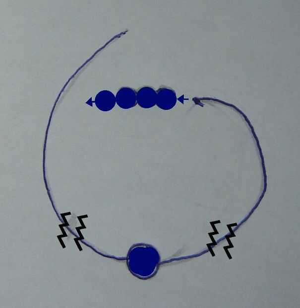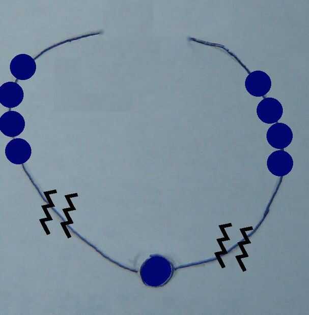• Enrosque un extremo del cable a través de las seis cuentas del tirón que a través de usted reunirse con abalorios espaciador. (ver imágenes abajo)