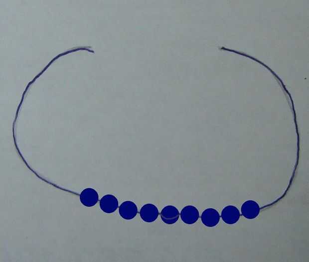 • Tomar el otro extremo del hilo y pasarlo a través de los granos en la dirección opuesta.