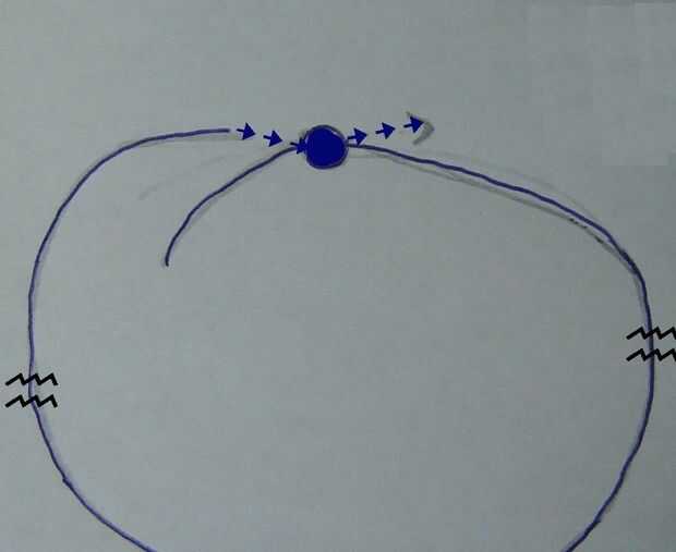 • Tomar el otro extremo del hilo y colócala en el talón en la dirección opuesta.
